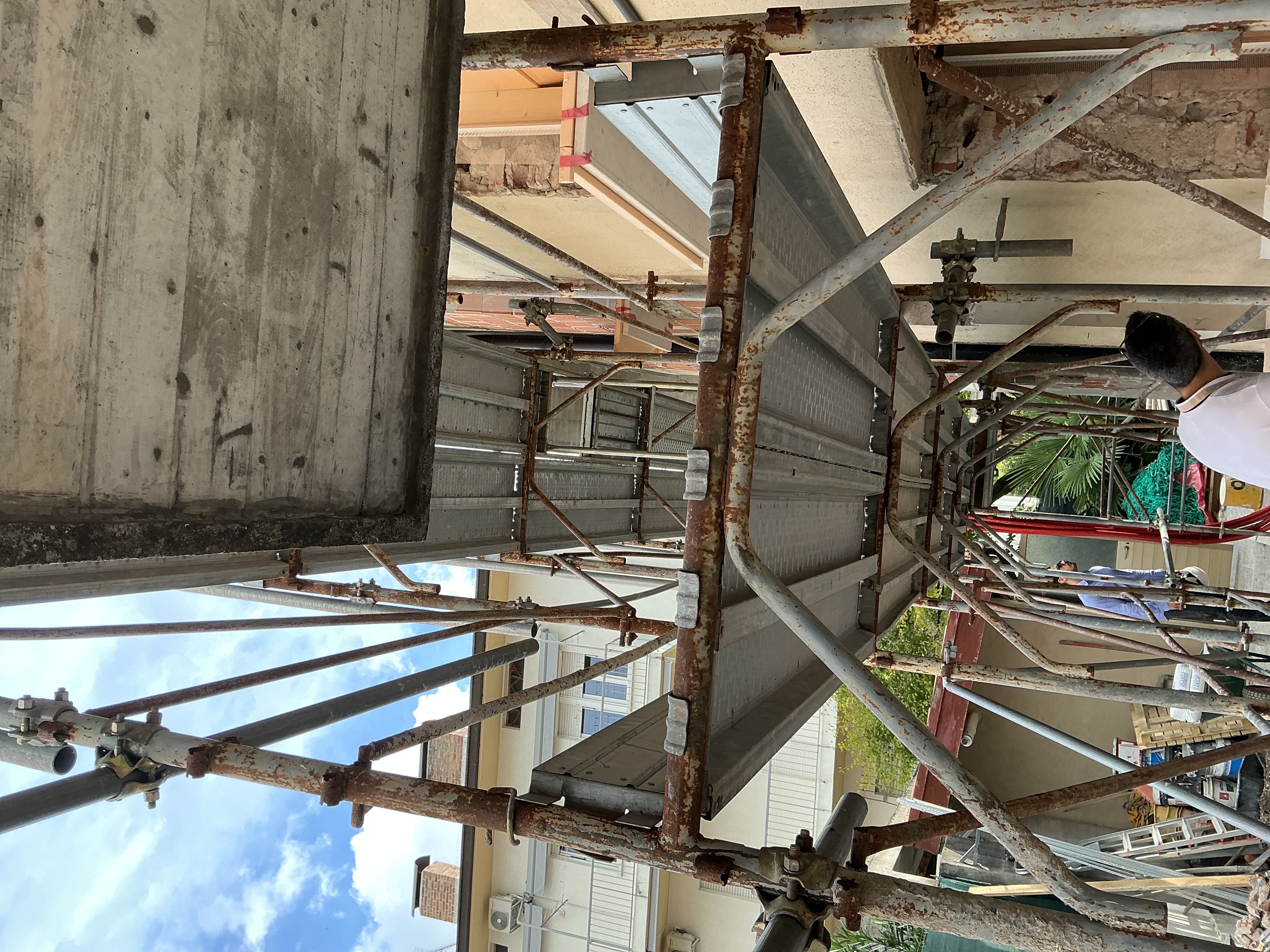 Rimuovere scala appoggiata al ponteggio ed usare quella in dotazione al ponteggio stesso