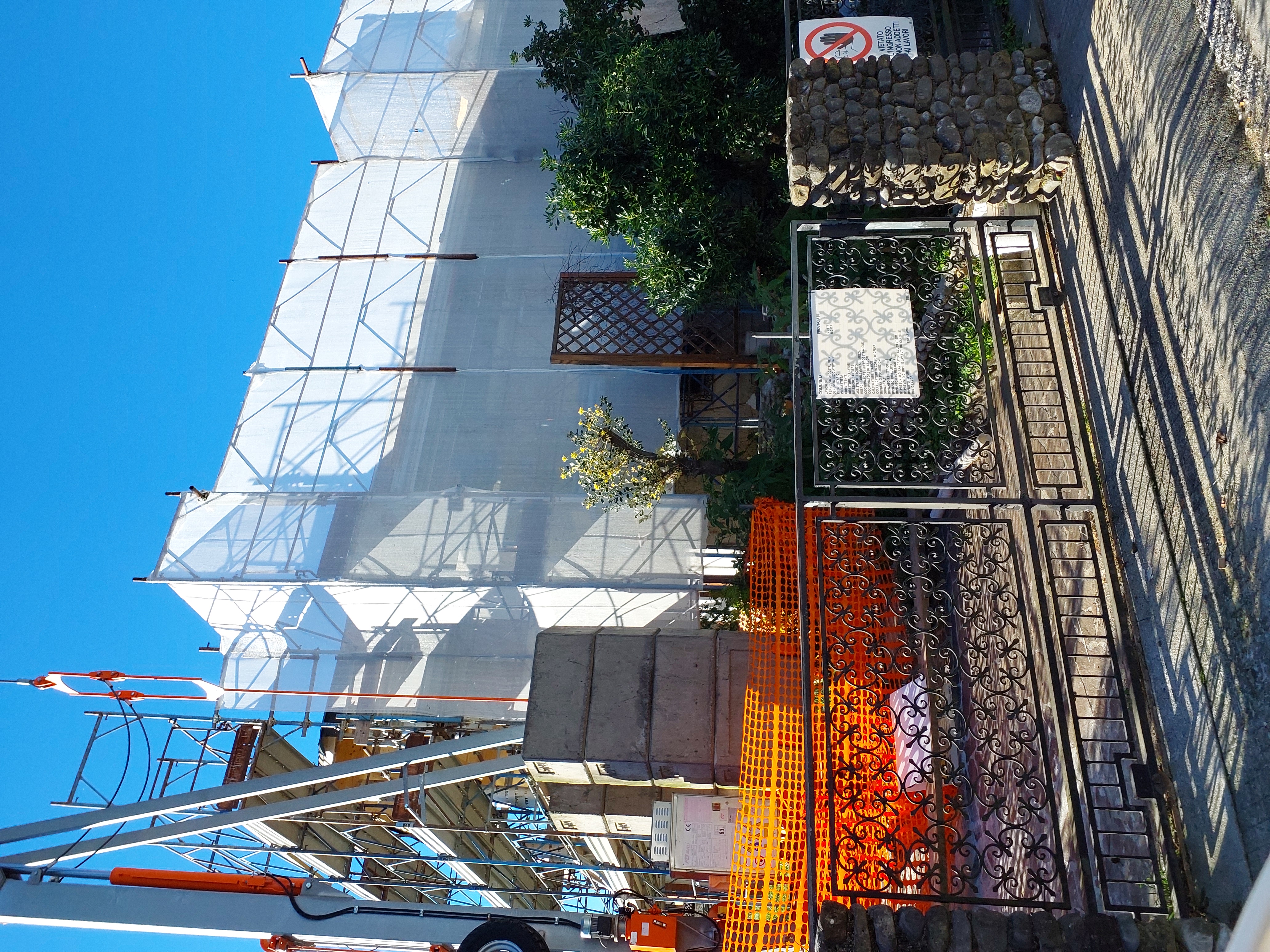 Rimuovere scala appoggiata al ponteggio ed usare quella in dotazione al ponteggio stesso