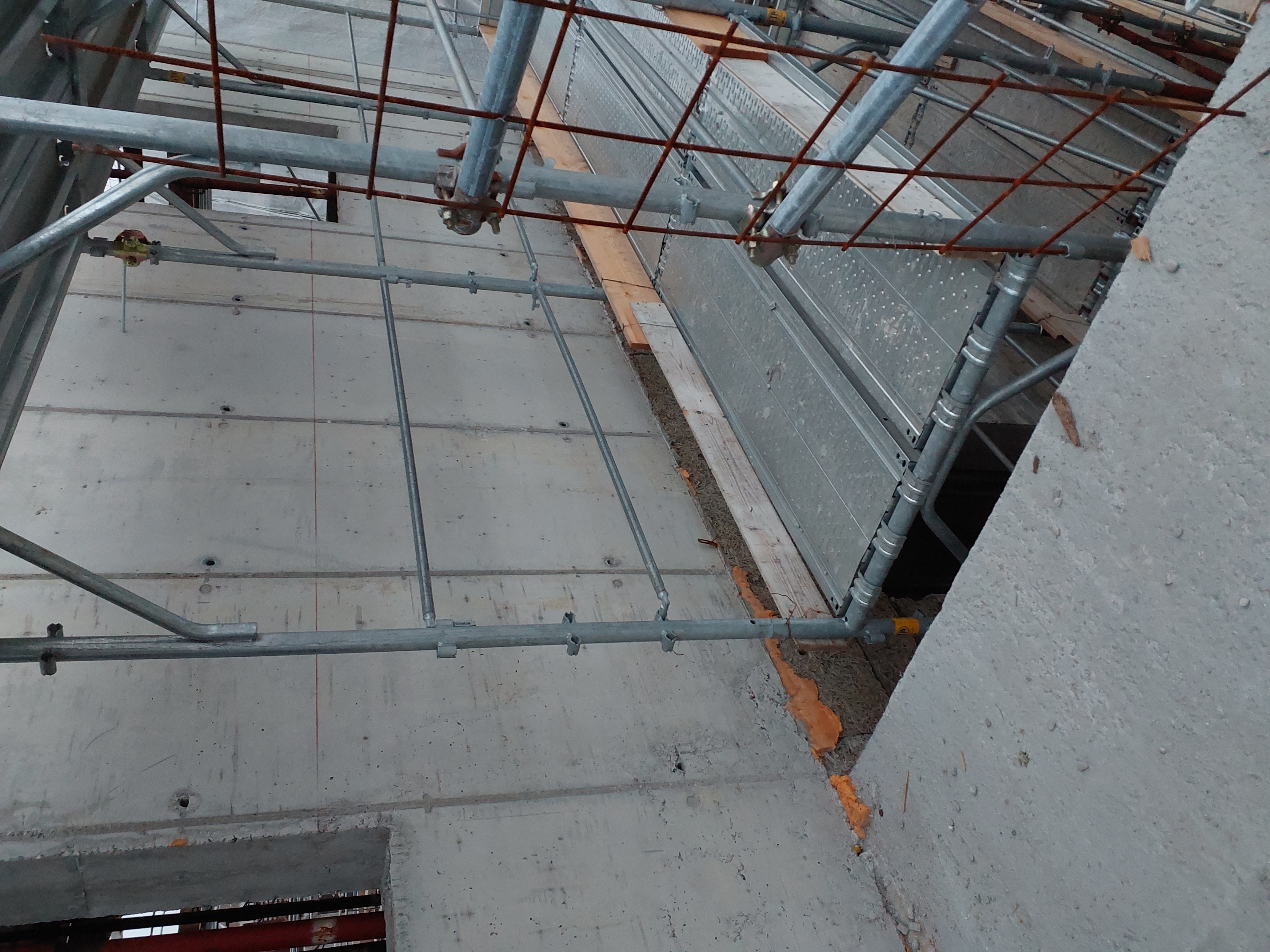 Ripristinare quanto prima la messa in sicurezza per i lavori in quota e utilizzo ponteggi, proteggere le aperture verso il vuoto. Le lavorazioni eseguite sul solaio devono essere eseguite con imbraghi vista la prossimità di apertura nel suolo e caduta verso i piani inferiori, la stessa pu5anche essere messa in sicurezza con dei tavolati o parapetto