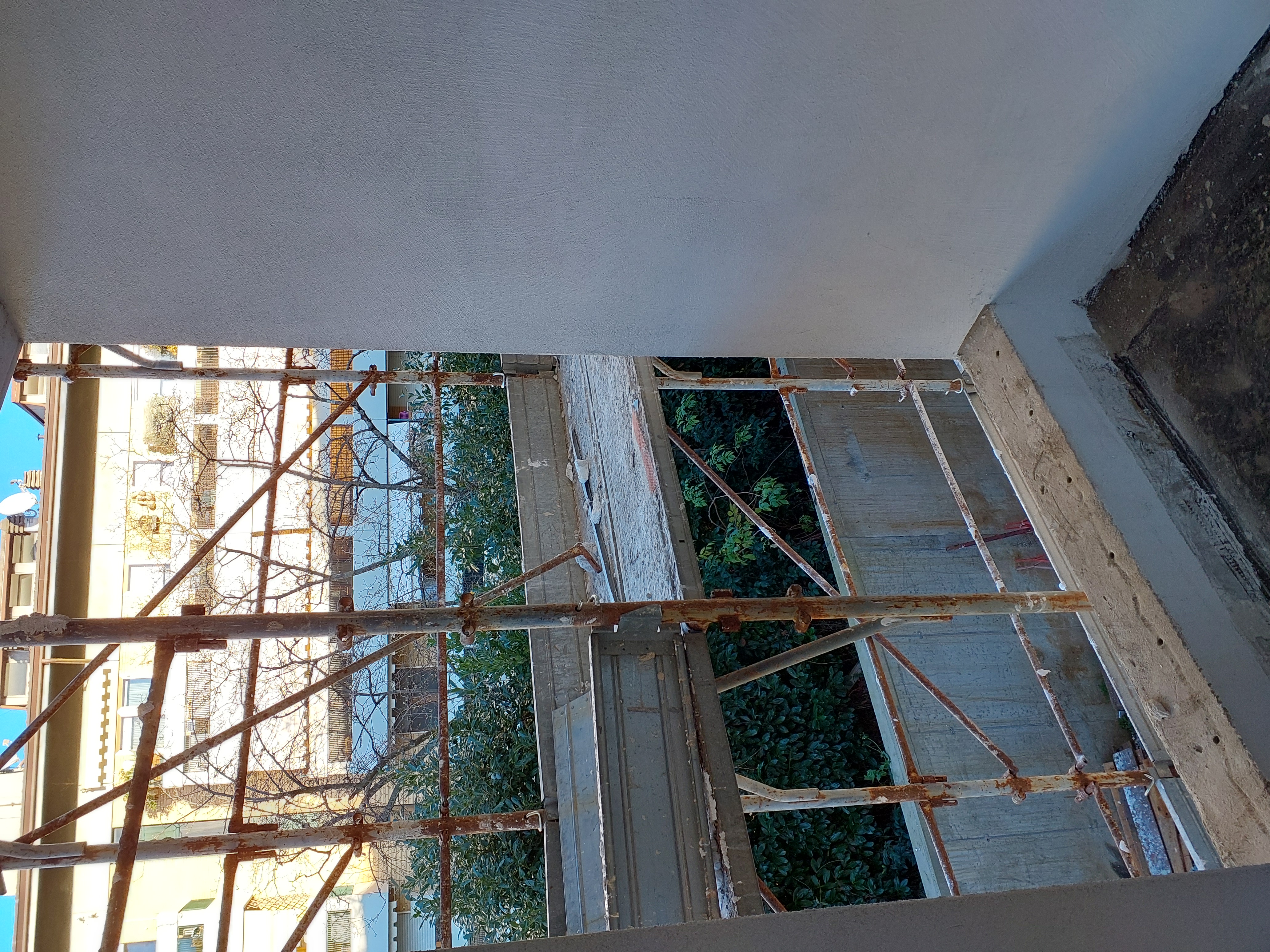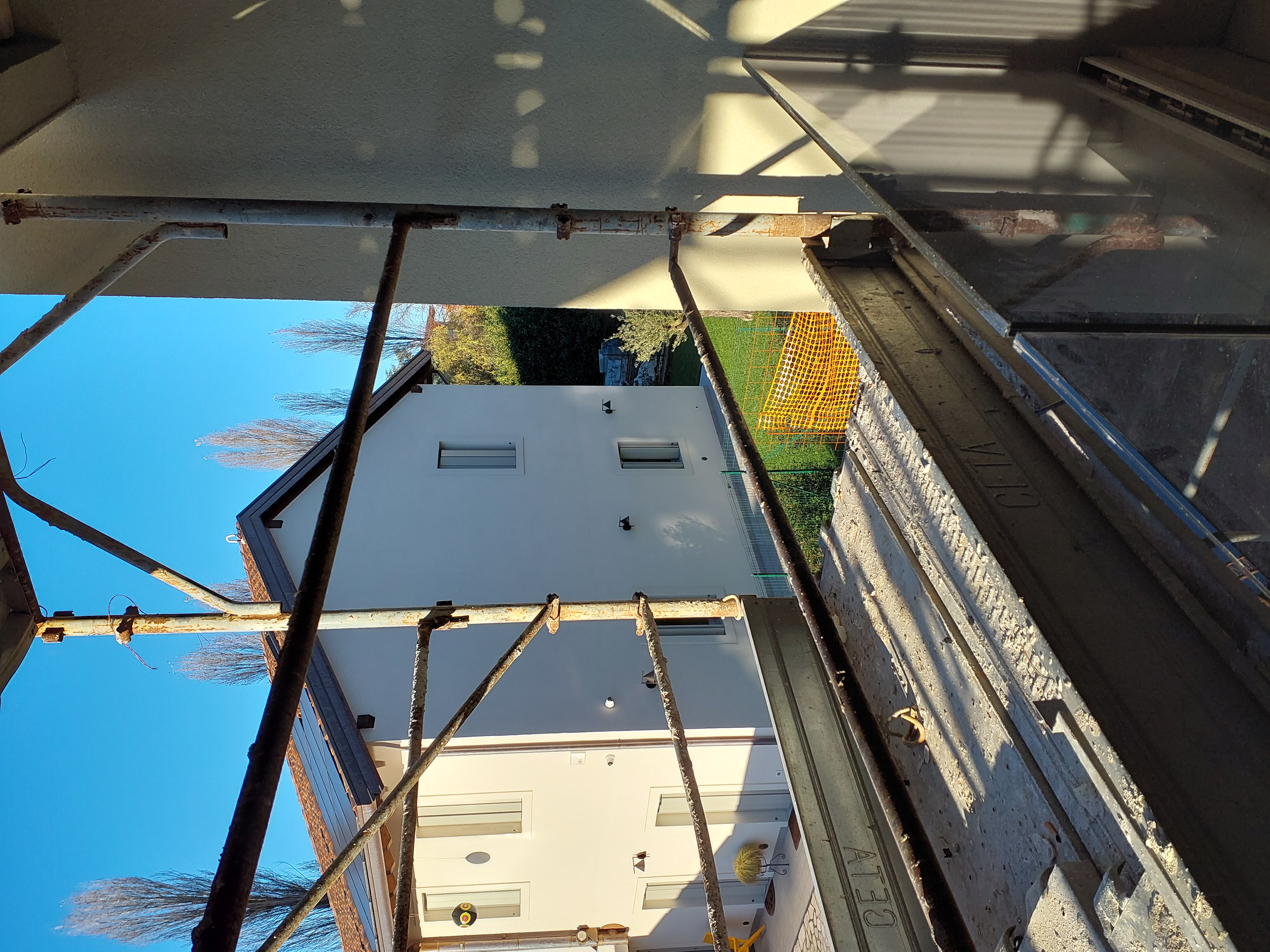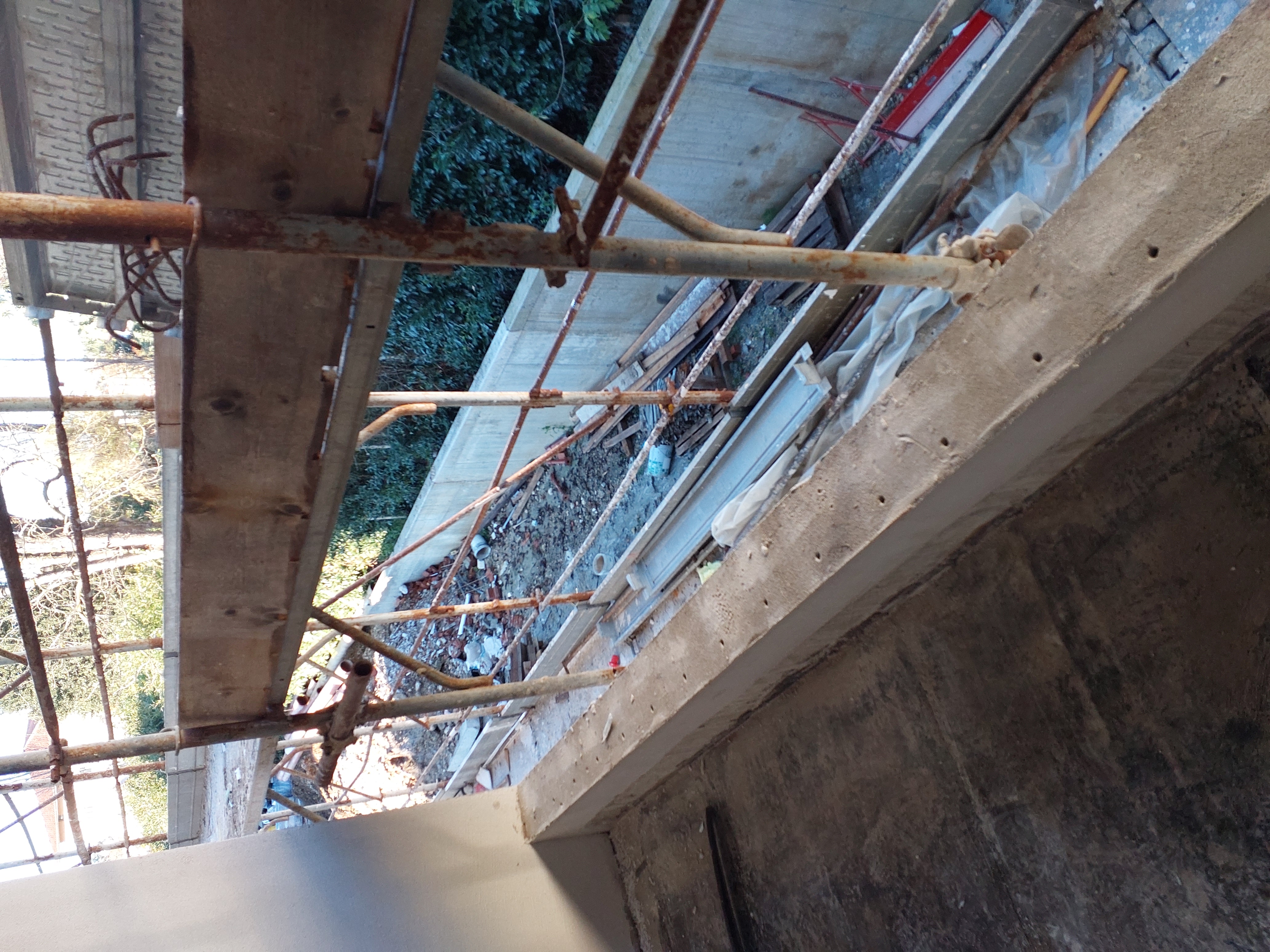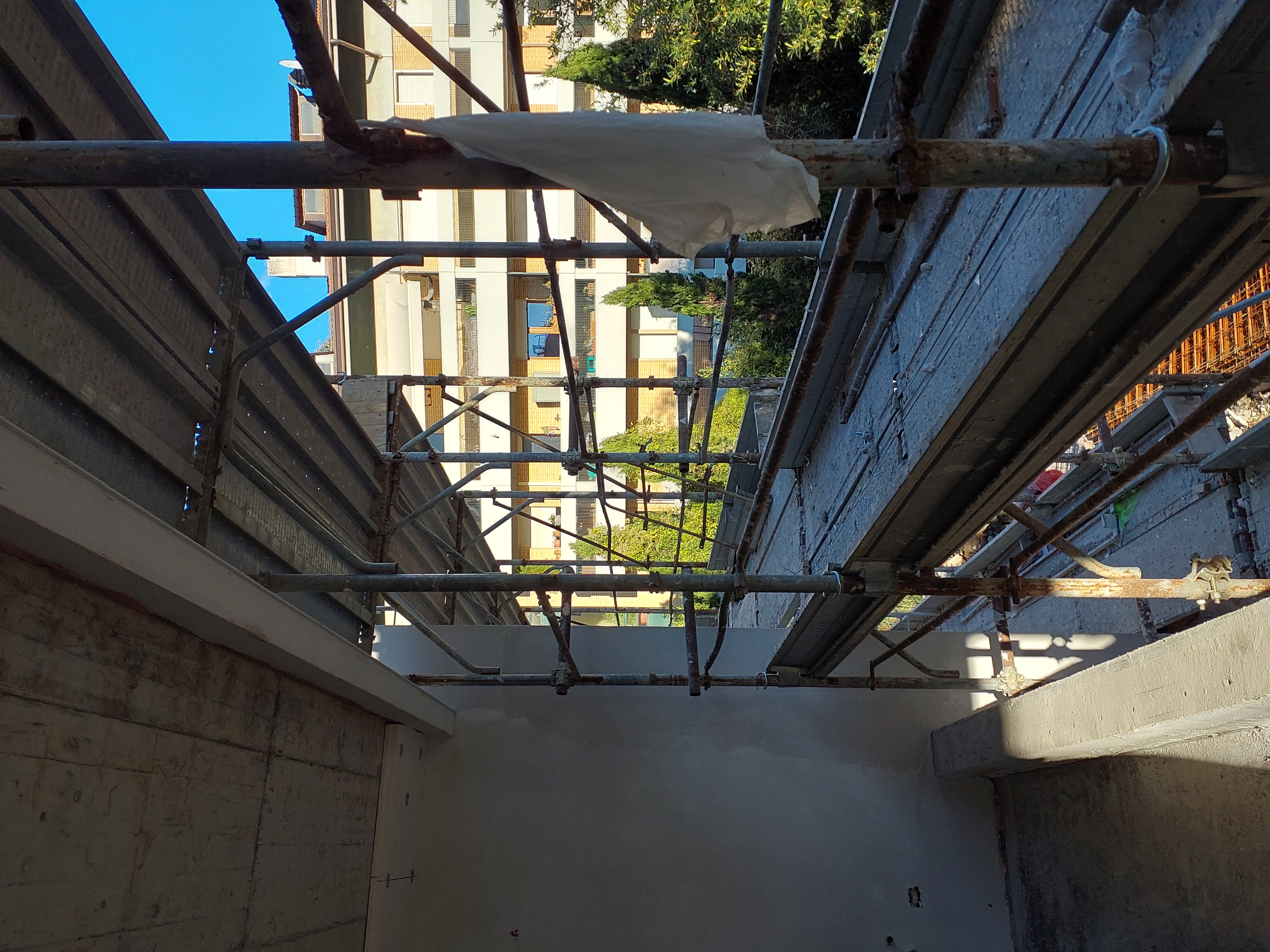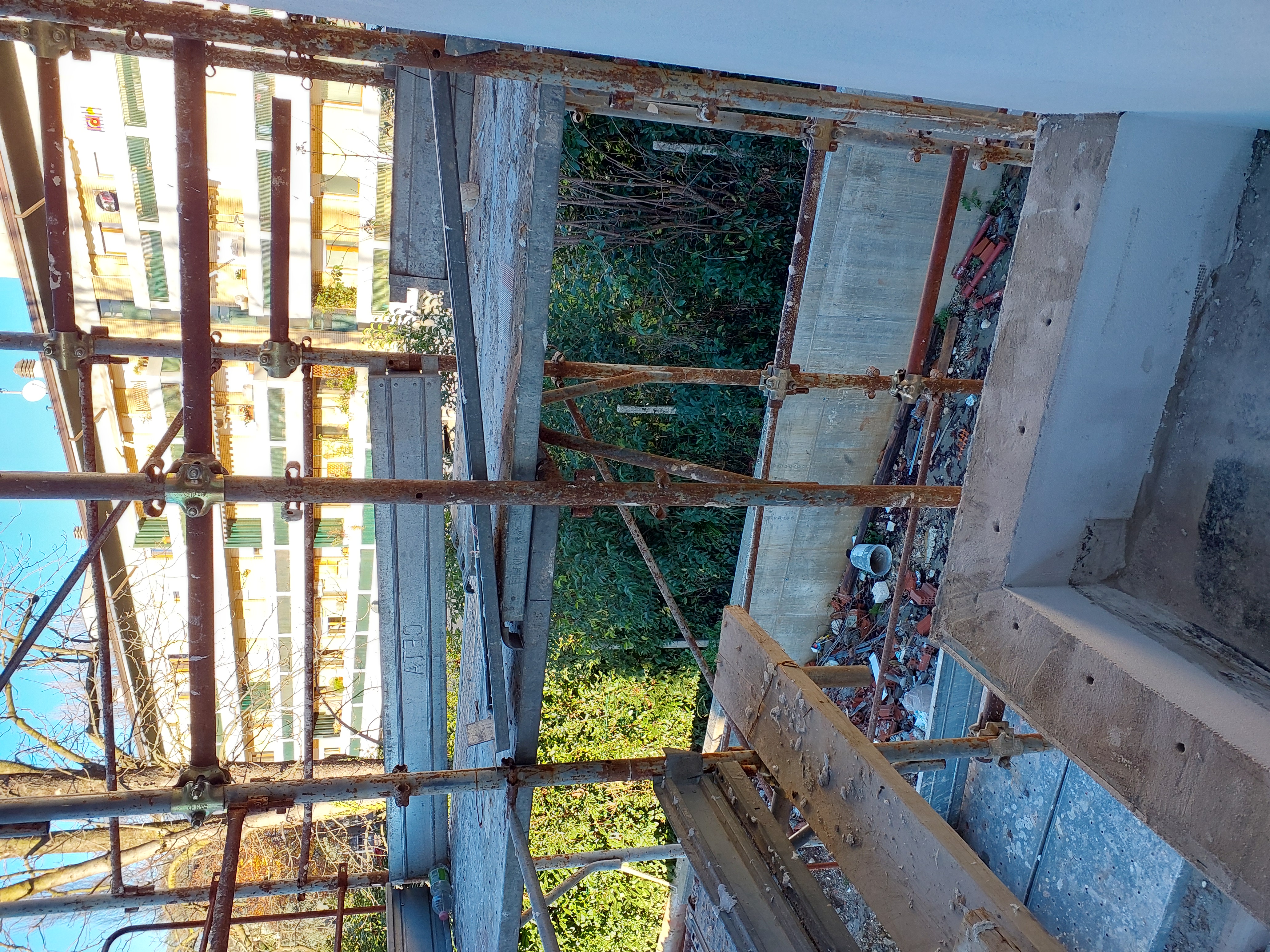 Rimuovere scala appoggiata al ponteggio ed usare quella in dotazione al ponteggio stesso