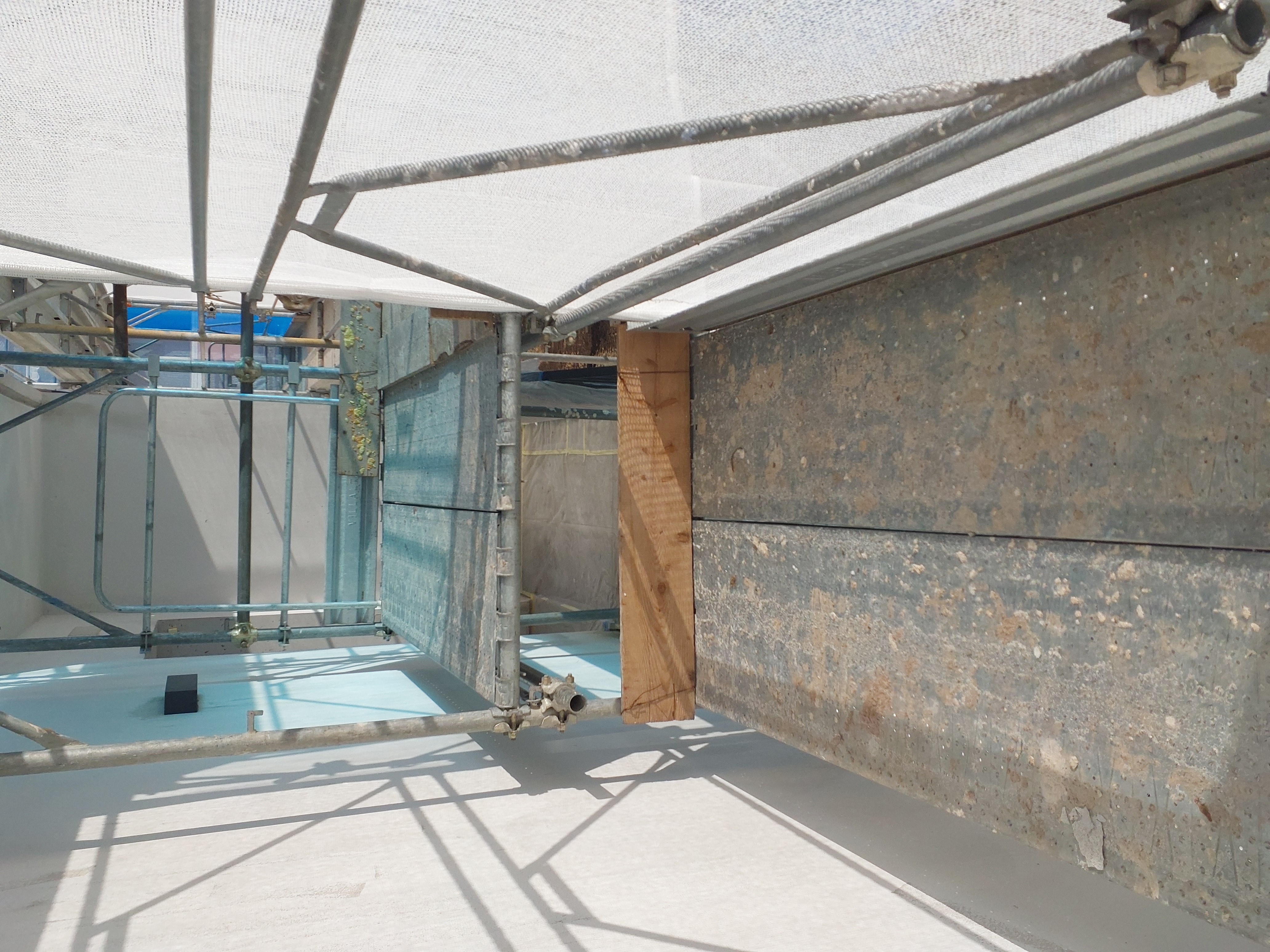 Rimuovere scala appoggiata al ponteggio ed usare quella in dotazione al ponteggio stesso