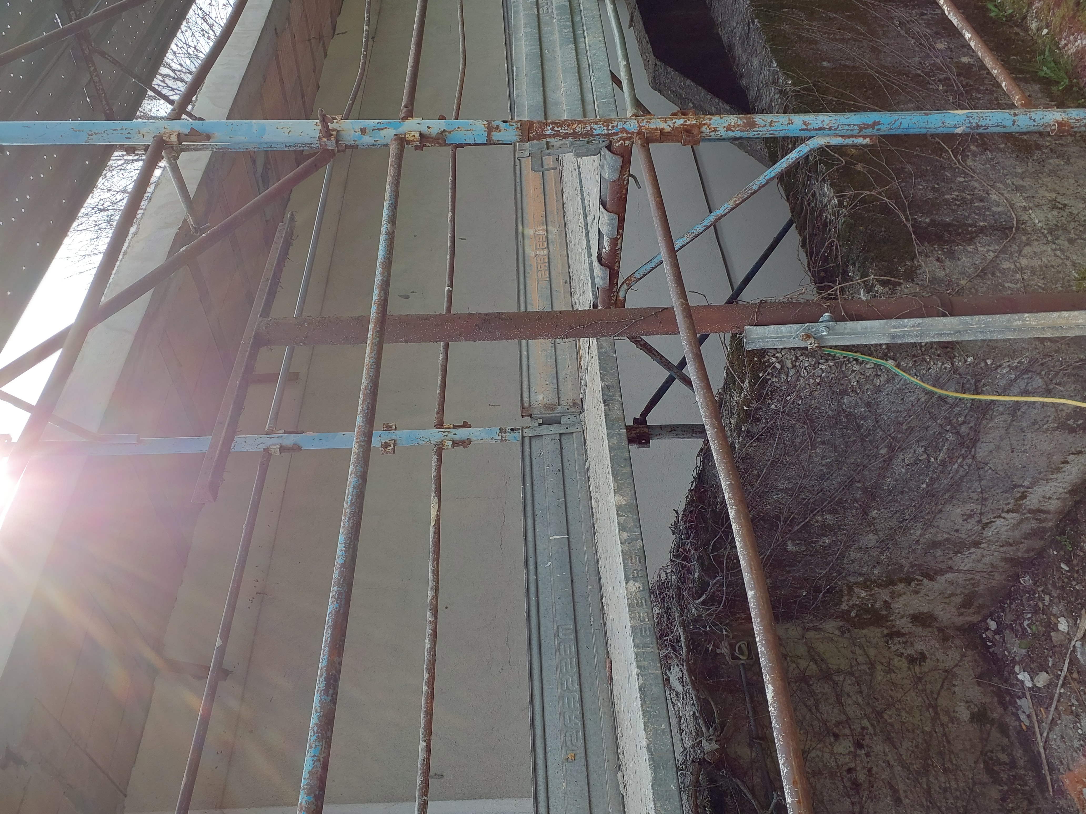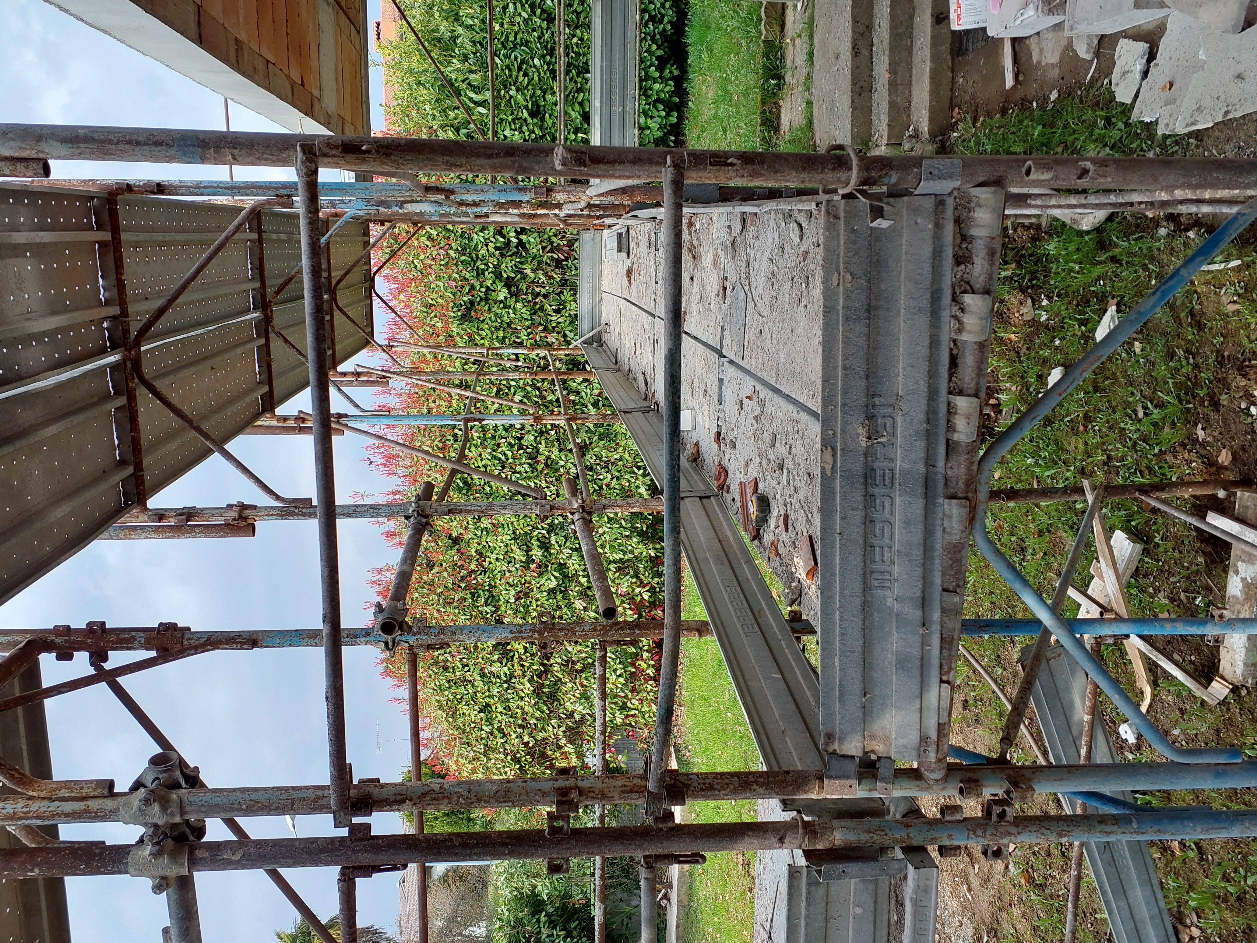 Rimuovere scala appoggiata al ponteggio ed usare quella in dotazione al ponteggio stesso